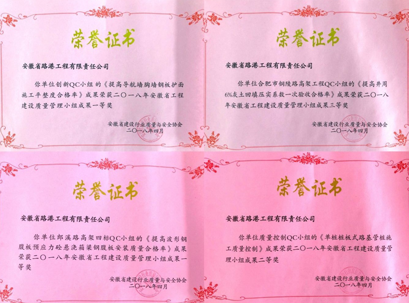 日前,從安徽省建筑業(yè)企業(yè)2018年QC小組活動(dòng)成果發(fā)表會(huì)上傳來(lái)喜訊,安徽路港公司4項(xiàng)QC成果獲獎(jiǎng)。