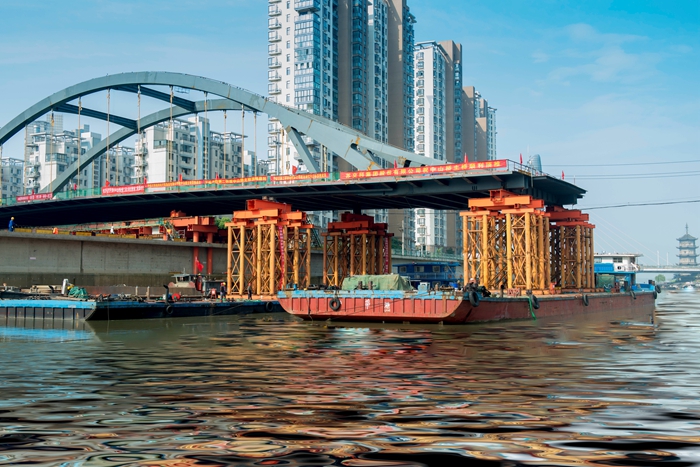 蕪湖中山橋改建工程是在原址拆老橋后重建新橋。新建中山橋南起浮山路,向北跨越青弋江、北沿河路后與中二街以橋梁形式相接,是連接蕪湖市城區(qū)南北交通的重要紐帶。在不增加橋面高度的情況下,新中山橋的橋下凈空高度提高了2米,滿足了三級航道通航要求,提升了蕪申運(yùn)河通航能力。