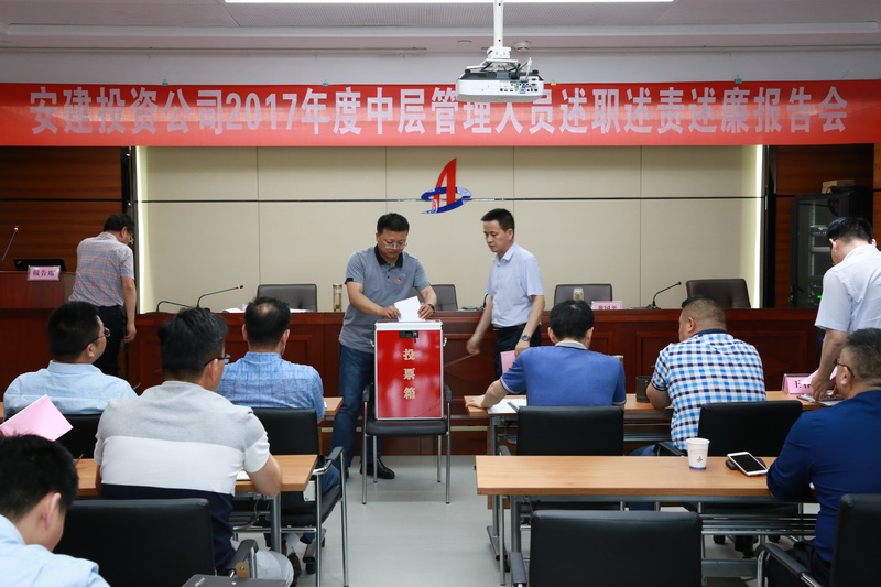 5月24日,安建投資公司召開(kāi)2017年度中層管理人員述職述責(zé)述廉報(bào)告會(huì)。公司領(lǐng)導(dǎo)班子成員、所屬各項(xiàng)目公司主要負(fù)責(zé)人、考核對(duì)象、機(jī)關(guān)全體員工、職工代表等40余人參加會(huì)議。會(huì)議同時(shí)對(duì)公司中層后備干部人選進(jìn)行了推薦。