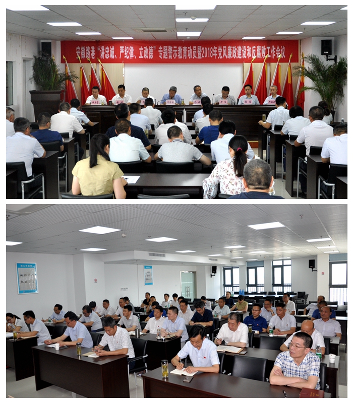 公司黨委書記馬斌結(jié)合《安徽路港公司黨委關(guān)于以魯煒案徽商集團窩案等案件為反面教材開展“講忠誠、嚴(yán)紀(jì)律、立政德”專題警示教育的實施意見》,對公司“講忠誠、嚴(yán)紀(jì)律、立政德”專題警示教育以及2018年黨風(fēng)廉政建設(shè)和反腐敗工作進(jìn)行了安排部署。