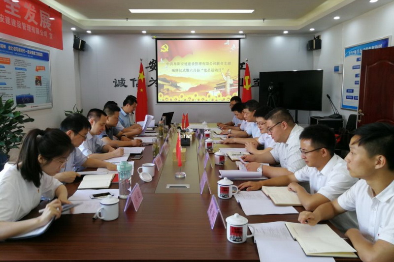 為進一步整合PPP項目投資建設資源,增強組織活力和凝聚力,由投資主體安建投資公司與參建單位安徽安裝公司共同組建了阜陽安建建設管理有限公司聯(lián)合黨支部。6月14日,該聯(lián)合黨支部舉行揭牌儀式,安徽投資黨總支書記余志剛,安徽安裝公司黨委書記胡六中,安建投資公司副總經理朱友良,安徽安裝公司紀委書記李寬旭共同為聯(lián)合支部揭牌并為支部贈書。