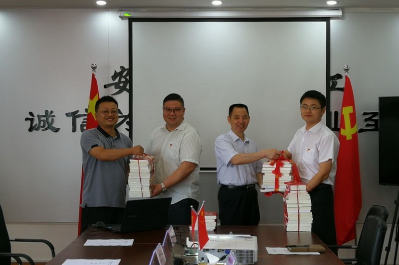 揭牌儀式在阜陽安建建設管理有限公司舉行。上午9:00,在領誓人余志剛的帶領下,全體黨員重溫了入黨誓詞。余志剛與胡六中共同為聯(lián)合黨支部贈送了黨建書籍,勉勵全體黨員努力學習,不忘初心,牢記使命,為項目投資建設作出積極貢獻。