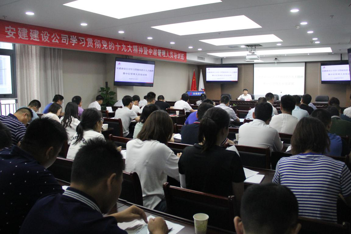 6月19日,安建建設(shè)公司在24樓會議室舉辦學(xué)習(xí)貫徹黨的十九大精神暨中層管理人員培訓(xùn)班,公司黨委書記王可武作開班動員。公司領(lǐng)導(dǎo)班子成員、中層管理人員、各工管部、辦事處、項目部負(fù)責(zé)人、中層后備干部、統(tǒng)戰(zhàn)人士、組織人事部門、群團組織負(fù)責(zé)人及在肥黨員共計70余人參加培訓(xùn)。