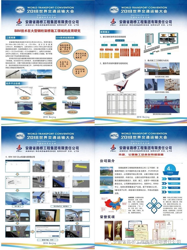 我公司受承辦方中國公路學(xué)會邀請參會,并向交通大會投稿《BIM技術(shù)在鋼桁架橋施工領(lǐng)域的應(yīng)用研究》論文,且于6月20日在大會參加墻報(bào)展示。公司墻報(bào)于國家會議中心三層學(xué)術(shù)交流區(qū)首個展席位展示,展報(bào)內(nèi)容受到國內(nèi)外專家關(guān)注。