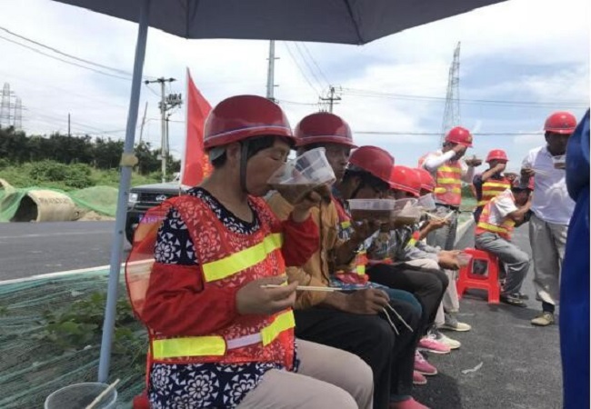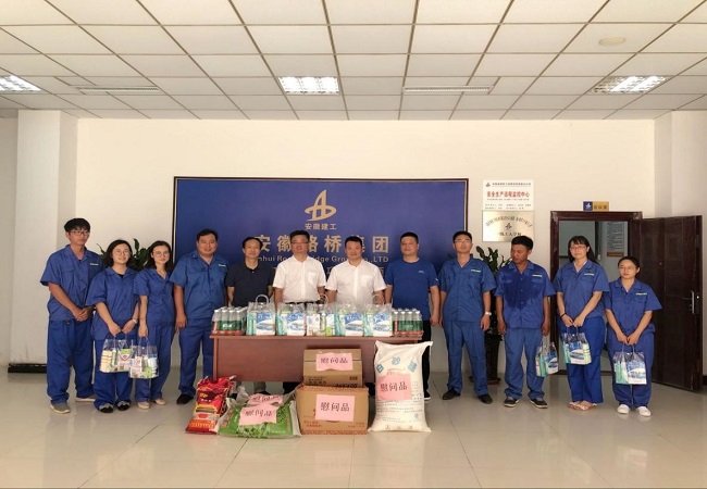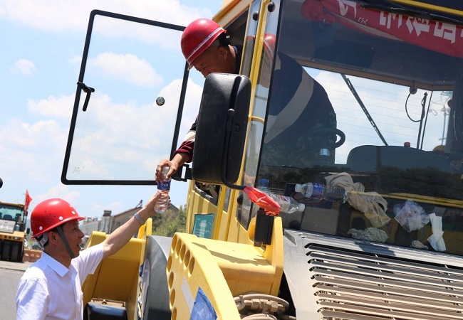公司領(lǐng)導(dǎo)每到一處,都會先來到溫度最高,熱浪最強的一線施工現(xiàn)場,雖然烈日當空,但在作業(yè)現(xiàn)場都會看到安徽路橋集團的紅旗招展,施工一線機械轟鳴,一片大干繁忙的景象,領(lǐng)導(dǎo)們每到一處,最先關(guān)心的就是一線施工人員,向他們表示親切的問候,并親手將防暑降溫慰問品以及防暑降溫藥品送到一線職工手中,叮囑項目管理人員要合理安排員工作息時間,采取有效防暑降溫措施,保證高溫作業(yè)條件下員工的身體健康。