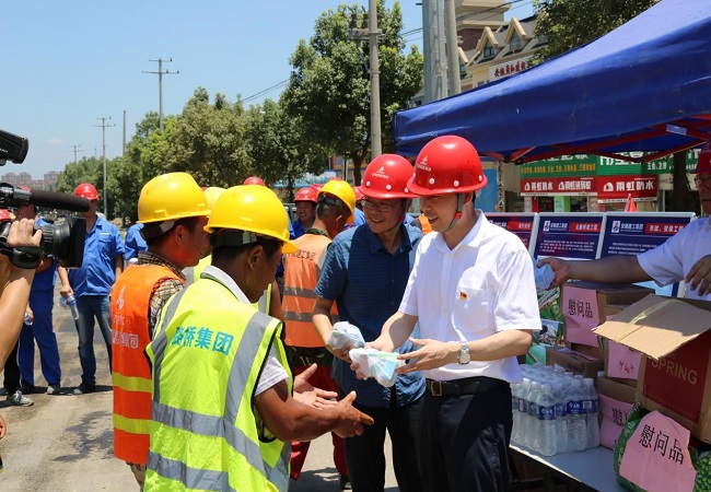 高溫橙色預(yù)警,最高氣溫超39°C!今年暑期,高溫熱浪席卷整個安徽大地。7月17日開始,公司領(lǐng)導(dǎo)分別奔赴市政、廣德、蕪黃等項目一線開展“戰(zhàn)高溫,送清涼”慰問活動,為堅守一線的職工送去“清涼”關(guān)懷和問候?!?/SPAN>戰(zhàn)高溫,送清涼”體現(xiàn)的不僅是安徽路橋集團人不怕苦不怕累艱苦卓絕精神,還有公司對一線員工的深深掛念。