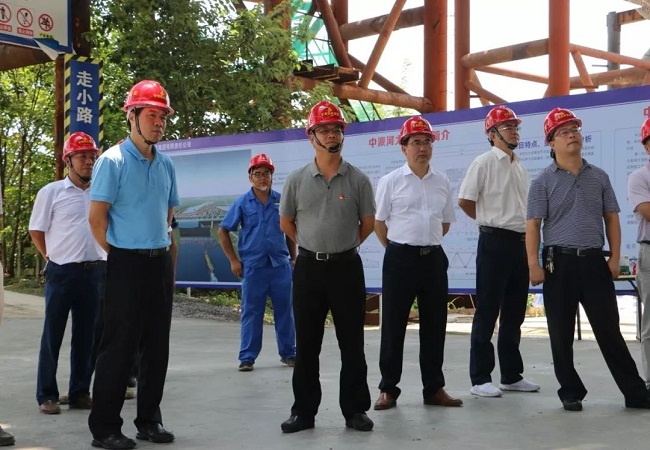 7月31日上午,江西省交通運(yùn)輸廳副廳長(zhǎng)王昭春在公司黨委副書記、董事、總經(jīng)理歐陽(yáng)志宜、三分公司黨總支書記、總經(jīng)理鮑建新的陪同下,蒞臨合安改擴(kuò)建01標(biāo)中派河特大橋現(xiàn)場(chǎng)參觀考察。