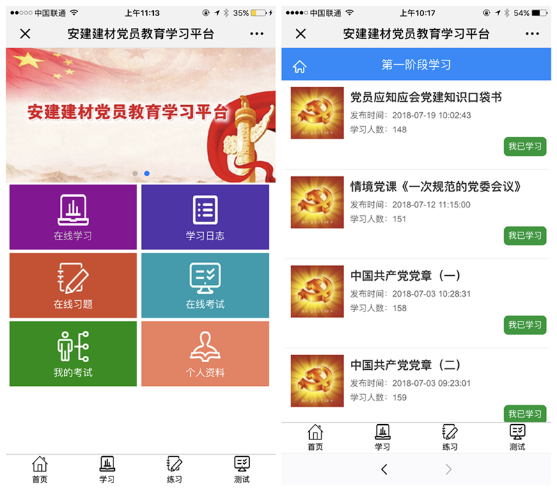 黨員教育學(xué)習(xí)平臺(tái)由“個(gè)人資料”、“在線學(xué)習(xí)”、“學(xué)習(xí)日志”、“在線習(xí)題”、“在線考試”、“我的考試”六個(gè)模塊組成?!霸诰€學(xué)習(xí)”模塊將通過(guò)文字、圖片、ppt、視頻等形式及時(shí)推送學(xué)習(xí)內(nèi)容,學(xué)員需在規(guī)定時(shí)間內(nèi),達(dá)到一定學(xué)時(shí)后才能完成學(xué)習(xí)任務(wù);“學(xué)習(xí)日志”清楚標(biāo)注個(gè)人學(xué)習(xí)情況及完成率,學(xué)員可進(jìn)行自我管理,及時(shí)完成學(xué)習(xí)任務(wù)。同時(shí),后臺(tái)可有效發(fā)揮督促作用,黨工部可隨時(shí)查看各支部的學(xué)習(xí)完成率以及完成學(xué)習(xí)任務(wù)的學(xué)員名單,并在階段性學(xué)習(xí)完成之后對(duì)各支部的學(xué)習(xí)完成情況進(jìn)行公布;“在線習(xí)題”就黨的十九大精神、上級(jí)黨委的重要會(huì)議及文件精神、黨建應(yīng)知應(yīng)會(huì)知識(shí)和黨風(fēng)廉政建設(shè)等內(nèi)容設(shè)置相關(guān)的題目,學(xué)員可自行答題學(xué)習(xí)和鞏固;“在線考試”模塊公司將定期從題庫(kù)抽取試題,組織進(jìn)行統(tǒng)一考試。學(xué)習(xí)平臺(tái)主要面向廣大黨員、預(yù)備黨員、發(fā)展對(duì)象、積極分子等。截至目前,學(xué)習(xí)平臺(tái)已經(jīng)有191人注冊(cè)成功并開(kāi)展第一階段學(xué)習(xí)任務(wù)。
