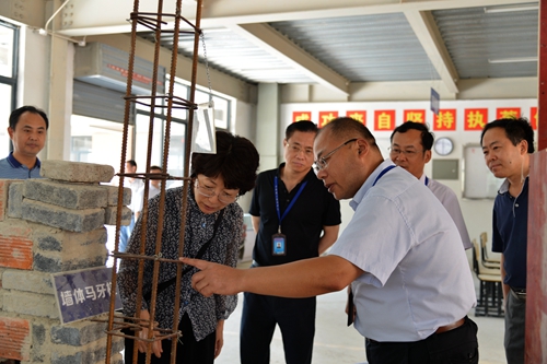王曉君一行還深入學(xué)院實(shí)習(xí)實(shí)訓(xùn)中心參觀與指導(dǎo),了解學(xué)院工學(xué)一體實(shí)踐情況,饒有興致地觀看實(shí)踐教學(xué)成果展,不時(shí)為學(xué)生實(shí)訓(xùn)作品點(diǎn)贊。王曉君對(duì)我院在建設(shè)類技能教育的辦學(xué)成果、辦學(xué)特色、辦學(xué)亮點(diǎn)稱贊不已,對(duì)我院在職業(yè)技能鑒定及高技能人才培訓(xùn)等方面的特色做法和取得的成績(jī)給予充分肯定,對(duì)我院今后發(fā)展提出了指導(dǎo)性意見(jiàn),她希望安徽建工技師學(xué)院要把握新時(shí)代職教發(fā)展新機(jī)遇,大力弘揚(yáng)工匠精神,堅(jiān)持辦學(xué)特色,爭(zhēng)取更大的成績(jī),為建設(shè)行業(yè)培養(yǎng)更多高技能人才,繼續(xù)探索推動(dòng)職業(yè)技能培訓(xùn)的新路徑、新方法,做大做強(qiáng)職業(yè)技能培訓(xùn),提升服務(wù)地方經(jīng)濟(jì)社會(huì)發(fā)展的貢獻(xiàn)度。