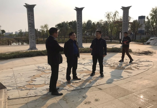 隨后,總經(jīng)理歐陽志宜一行現(xiàn)場查看了政務(wù)軸線景觀工程。