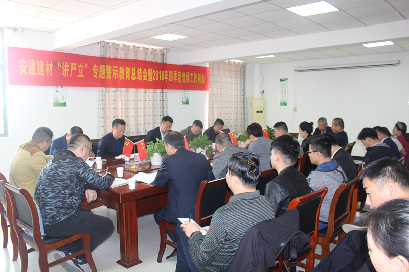10月29日上午,安建建材“講嚴(yán)立”專題警示教育總結(jié)會暨四季度黨群例會在一分公司小廟租賃站召開。安建建材黨委書記、董事長張鍵出席會議并講話。黨委副書記胡運(yùn)春主持會議,傳達(dá)建工控股四季度黨群工作例會暨“講嚴(yán)立”專題警示教育總結(jié)會議精神,并對公司“講嚴(yán)立”專題警示教育進(jìn)行了總結(jié)。紀(jì)委書記黃正清、副總經(jīng)理陶良敬參加會議。所屬各單位黨支部、紀(jì)檢、工會、共青團(tuán)主要負(fù)責(zé)同志,機(jī)關(guān)黨群部門人員等30余人參加會議。