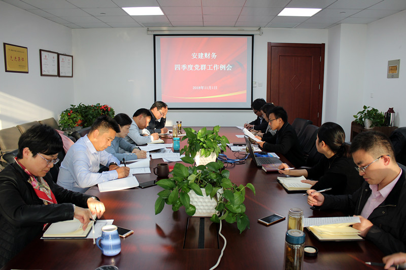 11月1日,安建財(cái)務(wù)公司黨總支召開四季度黨群工作例會,公司黨總支書記、副總經(jīng)理潘琳主持會議。副總經(jīng)理、紀(jì)檢委員于忠山,公司黨群部門,所屬各黨支部書記、支部委員及工會人員參加了會議。