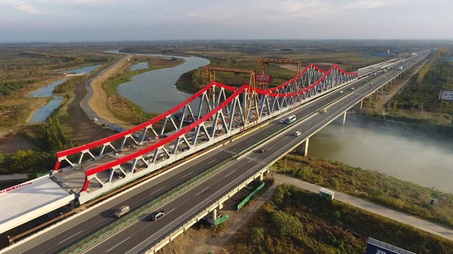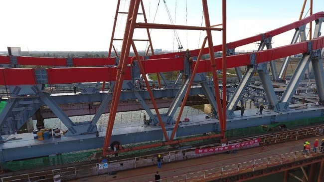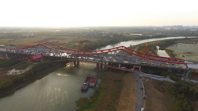 2018年11月2日下15點48分,中派河特大橋最后一個桁架桿件吊裝成功,標(biāo)志著合安改擴建項目中派河特大橋順利合攏。