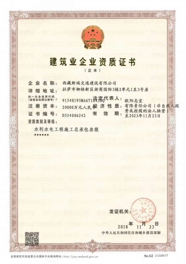 安徽路橋集團全資子公司西藏新瑞交通建設(shè)有限公司在去年取得公路、市政雙二級資質(zhì)后,近日,在集團公司的關(guān)心支持下,西藏新瑞公司再傳捷報,順利取得水利三級資質(zhì)!