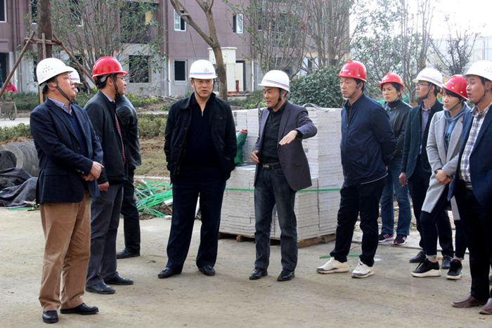 許克順一行來到九坊世家項目,前往東、西苑了解建設完成進度及每棟單體的收尾情況,同時還對相關設施建設進行仔細查看。