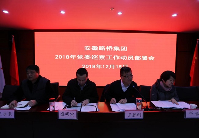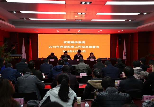 為貫徹落實(shí)全面從嚴(yán)治黨主體責(zé)任和監(jiān)督責(zé)任,規(guī)范路橋集團(tuán)巡察工作,促進(jìn)公司健康發(fā)展,12月15日,安徽路橋集團(tuán)召開2018-2019年黨委巡察工作動(dòng)員部署會(huì)。黨委書記、董事長(zhǎng)盛明宏出席會(huì)議并作動(dòng)員部署講話,黨委委員、紀(jì)委書記王勝利主持會(huì)議,公司巡察領(lǐng)導(dǎo)小組成員、紀(jì)委委員,所屬各子分公司黨政負(fù)責(zé)人、紀(jì)檢委員、黨群部門負(fù)責(zé)人及公司巡察辦及巡察組人員共計(jì)60人參加會(huì)議。