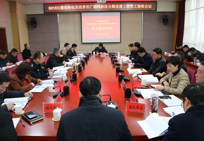 在各方的關(guān)注和支持下,近日,S215宜徽公路皖蘇省界至廣德鳳橋段公路改建工程(PPP)項目順利通過交工驗收。廣德縣副縣長邱型軍,廣德縣各有關(guān)部門、沿線鄉(xiāng)鎮(zhèn)、交通投資有限公司以及項目設(shè)計、監(jiān)理、檢測、施工單位參加驗收會議。公司黨委書記、董事長盛明宏,黨委副書記、總經(jīng)理歐陽志宜及分公司、項目部負(fù)責(zé)人員出席會議。