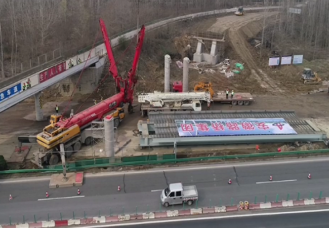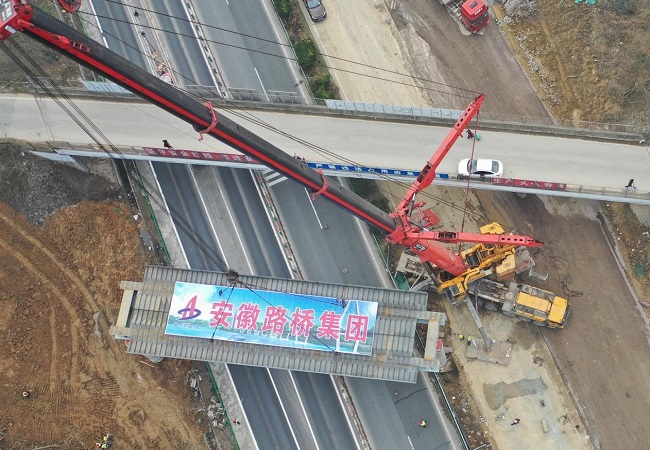 項(xiàng)目部技術(shù)管理人員迎難而上,多次論證,為降低成本減少高速導(dǎo)改次數(shù),徹底消除涉路高空焊接作業(yè)隱患,此次鋼板梁采用了“一鉤清”的地面組拼、整跨吊裝施工方案。根據(jù)計(jì)算分析,采用大噸位的600t汽車吊,雙向封閉合安高速20分鐘完成架設(shè),以確保鋼板梁的架設(shè)安全,在提高效率的同時(shí)也保證了架設(shè)的安全可靠。