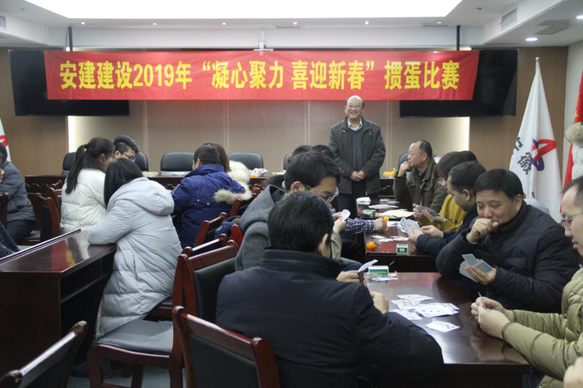 為進一步豐富員工文化生活,營造健康向上的文化氛圍,培養(yǎng)團隊合作精神,活躍節(jié)日氣氛。12月29日上午,安建建設公司組織機關及在肥項目全體員工舉辦了一場別開生面的“凝心聚力 喜迎新春”摜蛋友誼賽。公司紀委書記、工會主席高立久主持活動并講話。