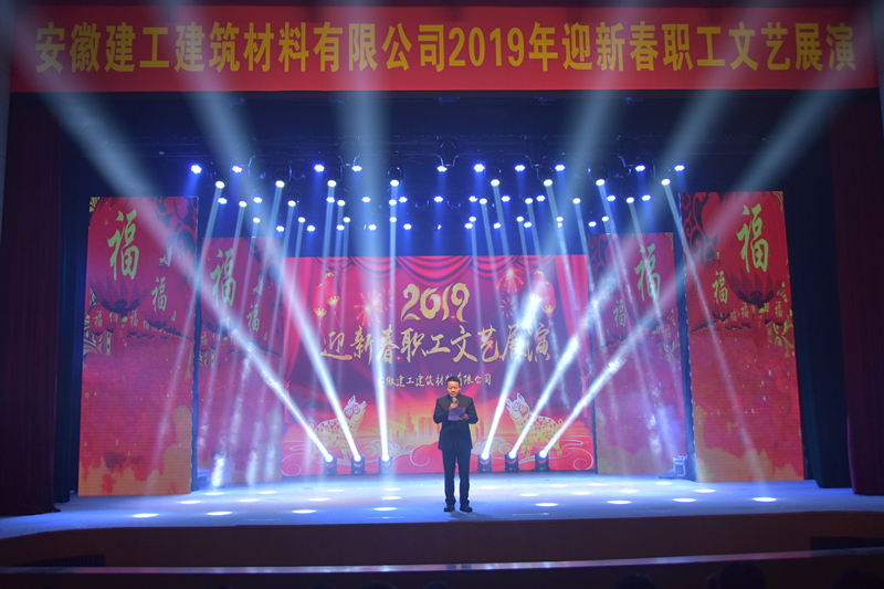 2019年1月18日下午,安建建材2019年迎新春職工文藝展演如約在合肥隆重舉行。股份公司監(jiān)事會主席牛曉峰及相關(guān)領導應邀出席展演,安建建材領導班子成員、各分子公司及機關(guān)部門負責人、公司員工近300人齊聚一堂,共同開啟2019年新華章!