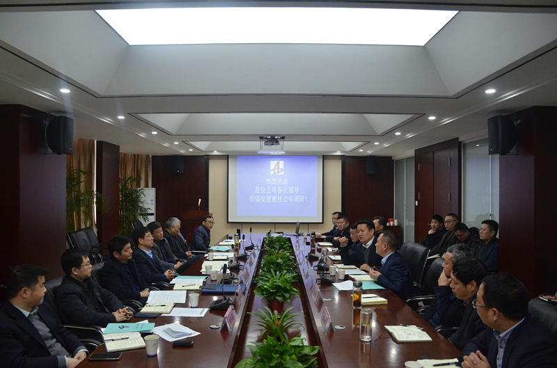 2019年2月26日上午,股份公司董事長(zhǎng)王厚良一行蒞臨安建建材調(diào)研指導(dǎo)工作。股份公司監(jiān)事會(huì)主席牛曉峰、財(cái)務(wù)總監(jiān)徐亮及相關(guān)部門負(fù)責(zé)人陪同調(diào)研。公司領(lǐng)導(dǎo)班子及各部門負(fù)責(zé)人參加了調(diào)研座談會(huì)。