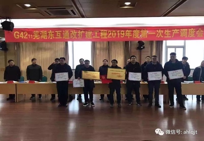3月1日蕪湖互通改擴(kuò)工程項(xiàng)目辦召開(kāi)2019年第一次生產(chǎn)調(diào)度會(huì)。會(huì)上對(duì)優(yōu)秀項(xiàng)目部及優(yōu)秀個(gè)人給予表彰,我公司被授予“優(yōu)秀施工單位”稱(chēng)號(hào),曹軍同志被授予“安全生產(chǎn)優(yōu)秀管理者”稱(chēng)號(hào)。