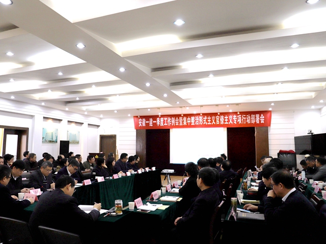 3月8日下午,安徽一建在七樓會議室召開一季度工作例會和集中整治形式主義官僚主義專項(xiàng)行動推進(jìn)會暨防范化解重大風(fēng)險(xiǎn)工作會議。會議由公司黨委副書記曹興堂主持,公司領(lǐng)導(dǎo),所屬各單位班子成員,機(jī)關(guān)各部門正副職,合肥地區(qū)自營項(xiàng)目經(jīng)理、技術(shù)負(fù)責(zé)人參加了會議。