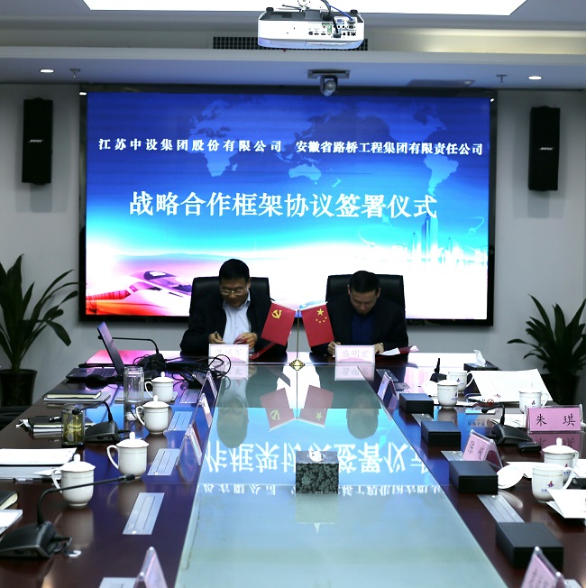 會后,盛明宏和陳鳳軍分別代表安徽路橋集團和江蘇中設(shè)團簽訂了戰(zhàn)略合作框架協(xié)議。
