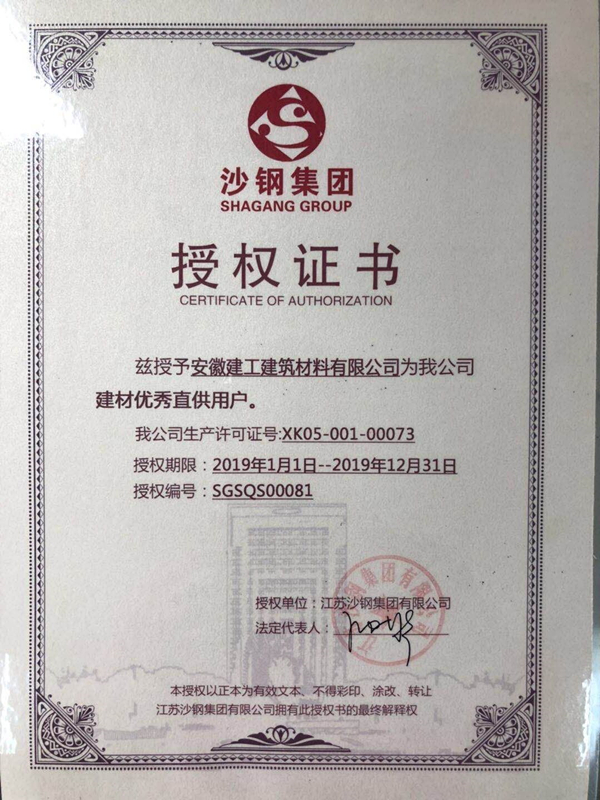 會議結(jié)束前,雙方舉行授牌儀式。江蘇沙鋼集團有限公司授予安徽建工建筑材料有限公司“優(yōu)秀直供客戶”稱號。