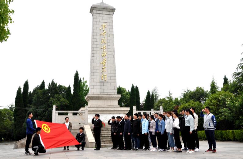 25日上午,參會人員赴鳳臺縣板張集革命烈士陵園開展紀(jì)念五四運動100周年暨“青春心向黨,建功新時代”特別主題團日活動。根據(jù)團中央的文件要求,儀式教育按照高唱國歌、敬獻(xiàn)花籃、默哀、團旗下的演講、重溫入團誓詞、高唱團歌的流程依次進(jìn)行。最后,全體人員參觀瞻仰了烈士陵園和板張集展覽館。