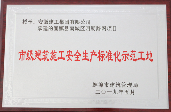 4月24日安徽建工集團(tuán)固鎮(zhèn)縣南城區(qū)四期路網(wǎng)項(xiàng)目,順利通過(guò)蚌埠市“市級(jí)建筑施工安全生產(chǎn)標(biāo)化示范工地”驗(yàn)收。