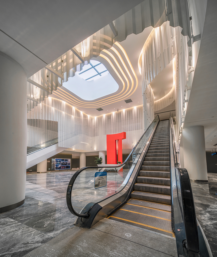 新技術(shù)應(yīng)用更顯創(chuàng)新館“本色”。由于創(chuàng)新館臨近水域濕氣大,不適用常規(guī)做法,為了保證水泥板基層乳膠漆墻面質(zhì)量,項(xiàng)目多次樣板試驗(yàn),采用封閉劑、高效能漆工藝攻克質(zhì)量隱患,解決潮濕地區(qū)水泥板基層乳膠漆墻面質(zhì)量問(wèn)題。該工程所有玻璃隔斷為無(wú)框高隔,工程人員現(xiàn)場(chǎng)研發(fā)制作專用鋼架龍骨,定制邊條,實(shí)現(xiàn)無(wú)框玻璃隔斷。為了提高裝飾性,施工人員現(xiàn)場(chǎng)開(kāi)發(fā)制作了環(huán)氧磨石地漏返水口造型,大大提高美觀度,得到了業(yè)主的贊賞。采用GRG制模技術(shù)對(duì)原圖紙石膏板喇叭口造型進(jìn)行定型化制作,解決了石膏板弧形易開(kāi)裂的問(wèn)題,也增強(qiáng)了美觀效果。