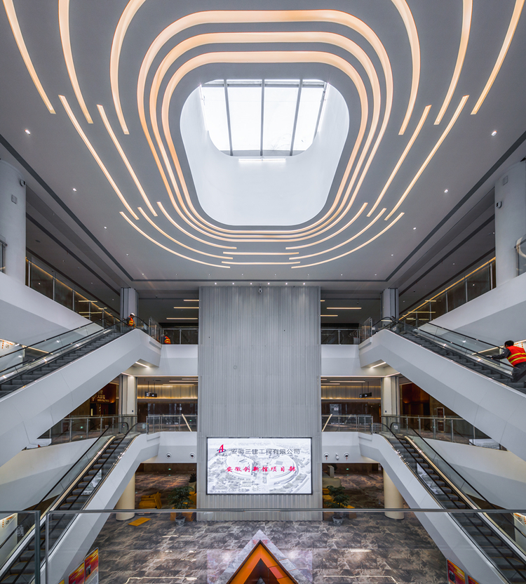 加強(qiáng)質(zhì)量過(guò)程控制,打造精品工程。安徽創(chuàng)新館工程的總設(shè)計(jì)師是深圳設(shè)計(jì)總院孟建民院士,他的設(shè)計(jì)向來(lái)以有創(chuàng)意、施工難度大著稱。該工程質(zhì)量要求高,工作內(nèi)容點(diǎn)多、面廣,專業(yè)難度大,涉及很多裝飾新材料、新工藝。為了確保工程質(zhì)量,項(xiàng)目建立工程質(zhì)量檢驗(yàn)制度,施工過(guò)程中嚴(yán)格按照三檢制度進(jìn)行施工,通過(guò)層層檢查、層層把關(guān),確保工序質(zhì)量符合工程質(zhì)量要求。項(xiàng)目堅(jiān)持標(biāo)準(zhǔn)引路、樣板先行,在每道工序前制作樣板,為大面積施工提供保障,精益求精,降本增效。對(duì)環(huán)氧磨石,藝術(shù)造型鋼板,GRG等新工藝、關(guān)鍵工藝全過(guò)程跟蹤,對(duì)廠家進(jìn)行考察,工藝改進(jìn),成本詢價(jià)等全方位把控。