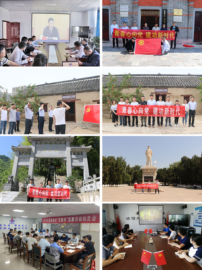 懷寧安建團(tuán)小組組織團(tuán)員青年集中收看紀(jì)念五四運(yùn)動(dòng)100周年大會(huì)盛況,及時(shí)學(xué)習(xí)習(xí)近平總書記在紀(jì)念五四100周年大會(huì)上的講話精神,并集體赴懷寧縣獨(dú)秀公園黨史教育基地和海子故居紀(jì)念館參觀學(xué)習(xí);阜陽(yáng)安建團(tuán)小組聯(lián)合太和安建團(tuán)小組集中觀看紀(jì)錄片《五四記憶》;太湖安建團(tuán)小組踴躍參加項(xiàng)目公司召開的2019年度“安康杯”競(jìng)賽動(dòng)員大會(huì),并就如何防范安全問(wèn)題積極發(fā)言,以實(shí)際行動(dòng)落實(shí)習(xí)近平總書記關(guān)于安全生產(chǎn)工作的重要指示精神;靈璧安建團(tuán)小組來(lái)到宿州彭雪楓紀(jì)念館開展主題活動(dòng),感悟彭雪楓將軍光輝一生的英雄事跡;廣德新鳳團(tuán)小組赴安徽廣德縣柏墊鎮(zhèn)梨山村英烈山開展主題活動(dòng),團(tuán)員們重溫了入團(tuán)誓詞,在40位英烈面前莊嚴(yán)宣誓;淮北安建交通團(tuán)小組赴淮海戰(zhàn)役總前委舊址接受革命傳統(tǒng)和愛(ài)國(guó)主義教育;績(jī)溪安建團(tuán)小組召開學(xué)習(xí)會(huì),深刻學(xué)習(xí)領(lǐng)會(huì)習(xí)近平總書記對(duì)廣大青年殷切期望;舒城安建團(tuán)小組赴新四軍四支隊(duì)革命紀(jì)念館,接受革命傳統(tǒng)教育;涇縣團(tuán)小組集體觀看紀(jì)念改革開放四十周年紀(jì)錄片《我們的四十年》,重溫改革歷史、追憶改革歲月、傳承改革基因。