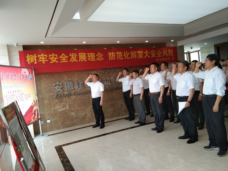 活動當(dāng)天,安建建材所屬子分公司在各自駐地同步開展安全宣誓及簽名儀式。