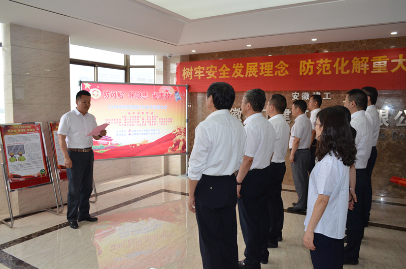 6月1日上午,公司在建工大廈7樓大廳舉行2019年“安全生產(chǎn)月”安全宣誓儀式暨安全承諾簽名活動。儀式由公司安全生產(chǎn)部聯(lián)合工會組織,公司副總經(jīng)理徐友修主持,公司領(lǐng)導(dǎo)班子及機關(guān)各部門負(fù)責(zé)人到場參加儀式。