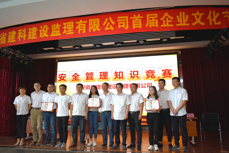 競(jìng)賽分為必答題、搶答題和選答題三類題型。每個(gè)環(huán)節(jié)增設(shè)現(xiàn)場(chǎng)觀眾互動(dòng)答題。競(jìng)賽現(xiàn)場(chǎng),選手們斗智斗勇,沉著應(yīng)答,以安全管理知識(shí)比高下,用知識(shí)展現(xiàn)各自風(fēng)采?,F(xiàn)場(chǎng)觀眾們踴躍參與和互動(dòng),使競(jìng)賽氣氛日趨激烈,觀眾的陣陣掌聲將競(jìng)賽推至高潮。經(jīng)過(guò)2個(gè)小時(shí)的激烈角逐,最終第六、第七和第二事業(yè)部分別獲得了本次安全管理知識(shí)競(jìng)賽的一、二、三等獎(jiǎng)。建科監(jiān)理公司總經(jīng)理張孝慶、支部書(shū)記高屹和副經(jīng)理陳嫣君分別為獲獎(jiǎng)代表隊(duì)頒獎(jiǎng)。