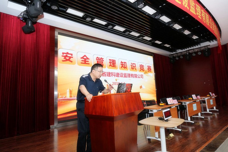 為認(rèn)真貫徹落實(shí)集團(tuán)和院《關(guān)于開(kāi)展2019年 “安全生產(chǎn)月”活動(dòng)的通知》精神,根據(jù)安徽建科監(jiān)理公司首屆企業(yè)文化節(jié)活動(dòng)安排,圍繞 “防風(fēng)險(xiǎn)、除隱患、遏事故”的活動(dòng)主題,6月1日上午,建科監(jiān)理公司舉辦安全管理知識(shí)競(jìng)賽。安徽建科副院長(zhǎng)郭楊,副院長(zhǎng)、總建筑師安東兵,紀(jì)委書(shū)記、工會(huì)主席程鋼親臨競(jìng)賽現(xiàn)場(chǎng)觀賽指導(dǎo)。本次競(jìng)賽各事業(yè)部均組織代表隊(duì)參加比賽。