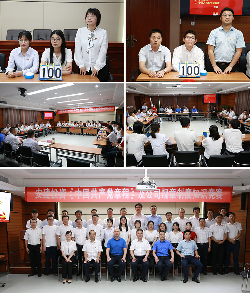 6月21日下午,安建投資公司舉辦《中國共產(chǎn)黨章程》及公司規(guī)章制度知識競賽。此次知識競賽旨在推動公司上下深入學習新修訂的《中國共產(chǎn)黨章程》,營造濃厚學習氛圍,同時提高制度意識,推動公司經(jīng)營管理制度化規(guī)范化水平不斷提升。公司所屬黨支部27名隊員組成的9支代表隊匯聚一堂,展開激烈角逐。公司領(lǐng)導朱忠明、劉賢奇、汪樂生、謝洪兵出席比賽。