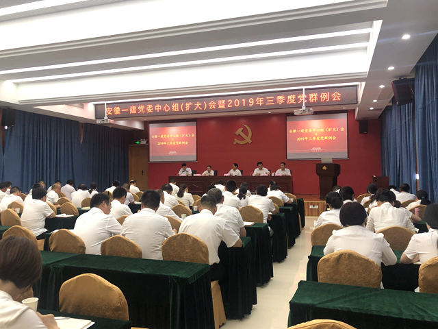 7月25日下午,安徽一建黨委召開中心組學(xué)習(xí)(擴大)會暨2019年三季度黨群例會。公司領(lǐng)導(dǎo)班子成員、機關(guān)中層管理人員、機關(guān)全體黨員、子分公司黨支部委員會成員、工會主席、團支部書記近100人參加會議。