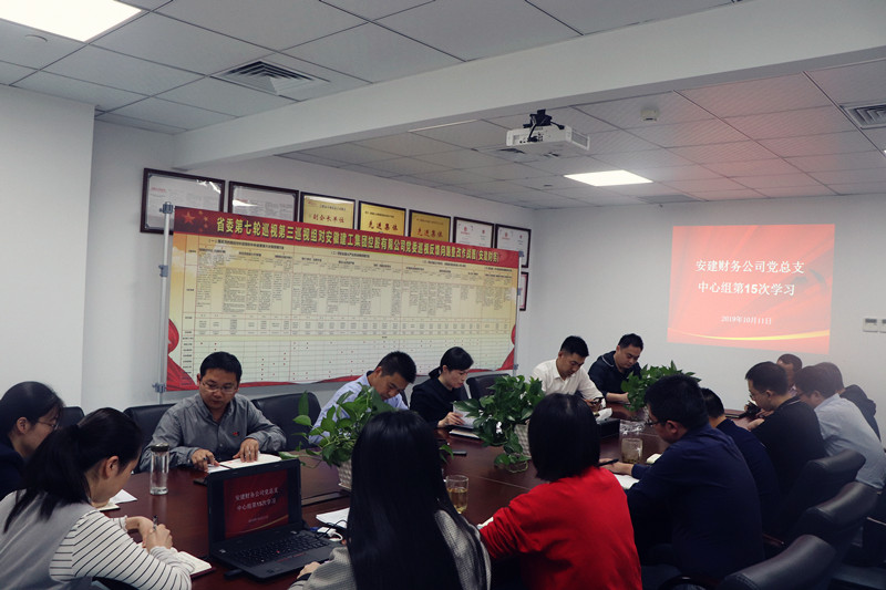 10月11日,安建財務(wù)公司黨總支中心組召開第15次(擴(kuò)大)學(xué)習(xí)會議。公司黨總支書記、副總經(jīng)理潘琳主持會議。公司領(lǐng)導(dǎo)班子成員,所屬各黨支部書記,支部委員及黨群部門相關(guān)人員參加了會議。