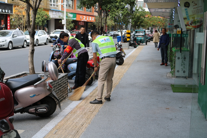 志愿者們分組合作,對(duì)街道進(jìn)行分段清掃,有的清理施工垃圾,有的清掃路面垃圾和落葉,干得熱火朝天。活動(dòng)中,黨員同志們沖在前、干在前,臟活累活搶著干,青年志愿者們奮勇爭(zhēng)先,不留死角地做好清掃工作。整整一個(gè)上午,志愿者們用辛勤勞動(dòng)換來(lái)干凈整潔的街道,獲得周邊居民一致好評(píng)。