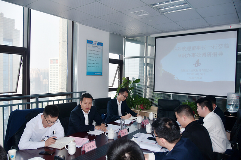 10月24日上午11點(diǎn)18分,安建建材阜陽市標(biāo)準(zhǔn)化辦事處正式揭牌。安建建材黨委書記、董事長張鍵赴阜陽辦事處調(diào)研并為辦事處揭牌,資源中心副主任魯曉偉、董事會秘書莊軒陪同調(diào)研,三分公司經(jīng)理施松、副經(jīng)理葉其林及阜陽辦事處全體人員參加了揭牌儀式及調(diào)研會議。