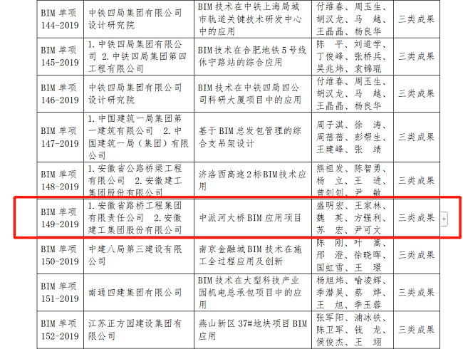 中國建設(shè)工程BIM大賽,是目前國內(nèi)BIM行業(yè)認(rèn)可度最高的全國性大賽。繼榮獲安徽省BIM技術(shù)應(yīng)用大賽二等獎(jiǎng)后,《中派河大橋BIM應(yīng)用項(xiàng)目》再獲全國“第四屆建設(shè)工程BIM大賽” 單項(xiàng)類三等獎(jiǎng),充分展現(xiàn)出安徽路橋集團(tuán)BIM技術(shù)研究已達(dá)到行業(yè)先進(jìn)水平。