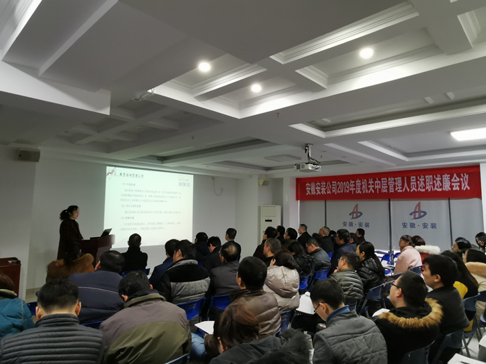 1月7日上午,安徽安裝公司召開(kāi)2019年度機(jī)關(guān)中層管理人員述職述廉會(huì)議。公司領(lǐng)導(dǎo)班子成員、機(jī)關(guān)中層管理人員、分公司黨政負(fù)責(zé)人、機(jī)關(guān)部門(mén)員工代表共60余人參加了此次會(huì)議。會(huì)議由公司黨委書(shū)記、董事長(zhǎng)胡六中主持。