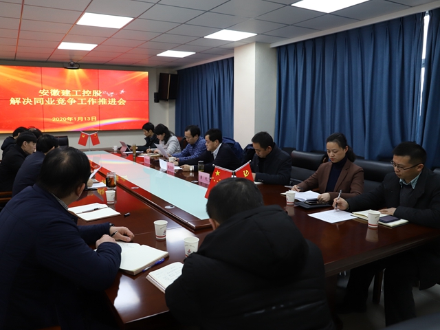 2020年1月13日下午,建工控股領導戴良軍、李有貴、建工股份領導黃代在有關部門負責人陪同下,赴安徽一建圍繞“推進解決同業(yè)競爭工作”這一主題進行調研指導。公司領導班子成員及有關部門負責人參加了會議。