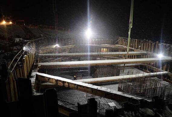 1月14日晚,北岸主橋9#墩施工現(xiàn)場(chǎng)燈火通明,一片忙碌。項(xiàng)目部按照預(yù)定施工節(jié)點(diǎn),進(jìn)行9#承臺(tái)澆筑。9#墩承臺(tái)設(shè)計(jì)方量2479.5m³,為加快施工進(jìn)度,項(xiàng)目部精心組織、科學(xué)謀劃,期間更是克服雨雪等天氣的不利影響,全力保障現(xiàn)場(chǎng)生產(chǎn)!最終,9#墩承臺(tái)歷時(shí)48小時(shí)順利澆筑完成,為年前順利完成7#、8#、9#墩承臺(tái)澆筑任務(wù)開了一個(gè)好頭。