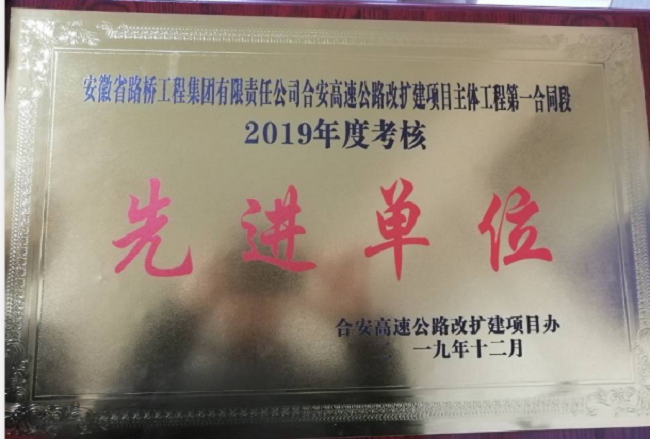 2019年12月底,合安高速改擴(kuò)建01標(biāo)榮獲合安改擴(kuò)建項目辦頒發(fā)的“2019年度考核先進(jìn)單位”榮譽稱號。