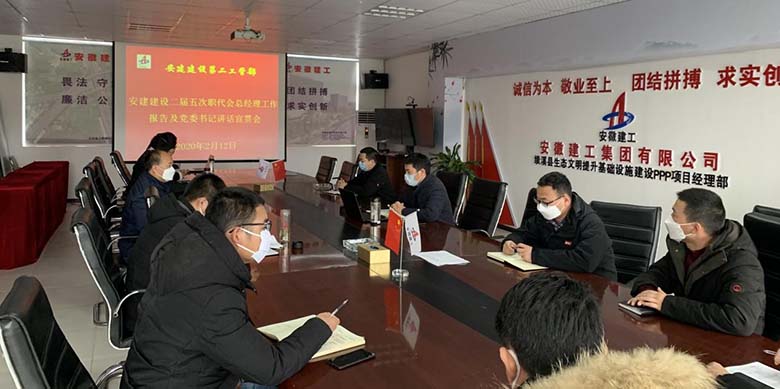 近期,安建建設第二工管部先后召開會議,跟進學習習近平總書記重要講話精神、省委以及集團黨委、公司黨委關于疫情防控和復工復產(chǎn)相關部署,結(jié)合宣貫集團一屆七次職代會、公司2020年工作會議精神和第二工管部2020年度指標要求,有力有序推進疫情防控和復工復產(chǎn),作為地方重點民生工程的績溪EPC項目率先復工。