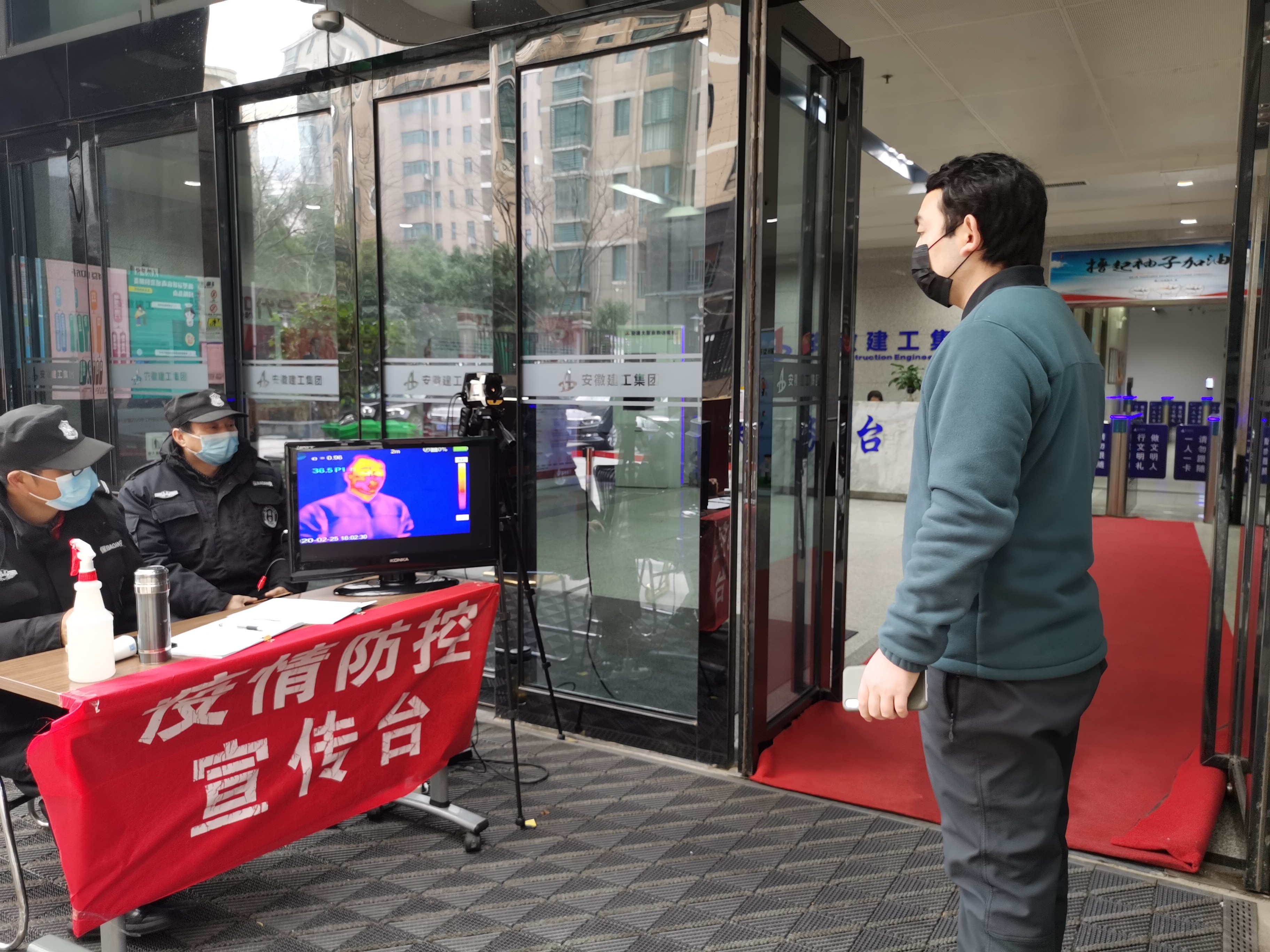 二、配置高精設(shè)備,嚴把人員進出。復(fù)工前夕,安建物業(yè)為安建大廈項目部配置一臺熱成像紅外體溫檢篩儀,2—5米非接觸式快速篩查避免交叉感染,高精度人體測溫算法提高測量精準度,熱成像終端系統(tǒng)對進出人員進行智能化體溫監(jiān)控,出現(xiàn)異常體溫人員,系統(tǒng)實時報警、自動捕獲,運用科技手段助力駐廈企業(yè)安全復(fù)工。